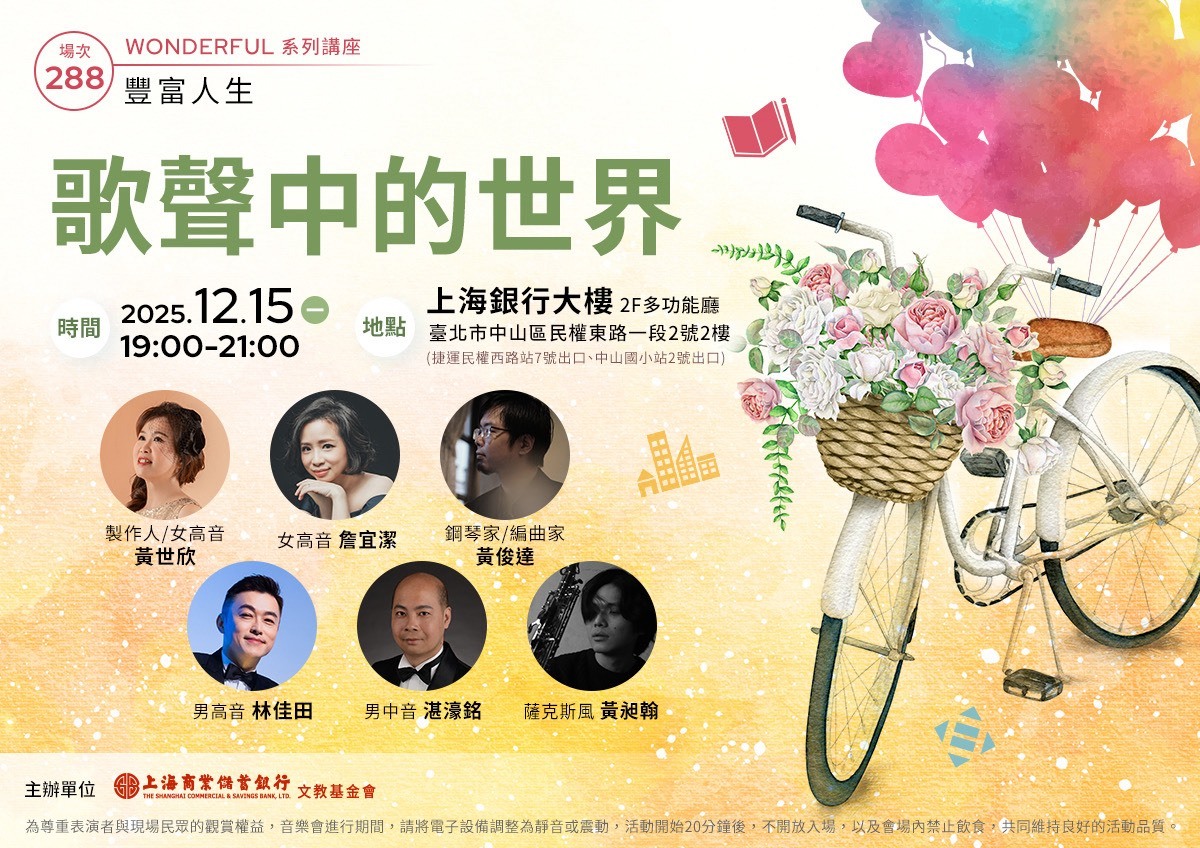 林佳田老師將於上海商業儲蓄銀文教基金會「WONDERFUL 系列講座」第288場登臺,